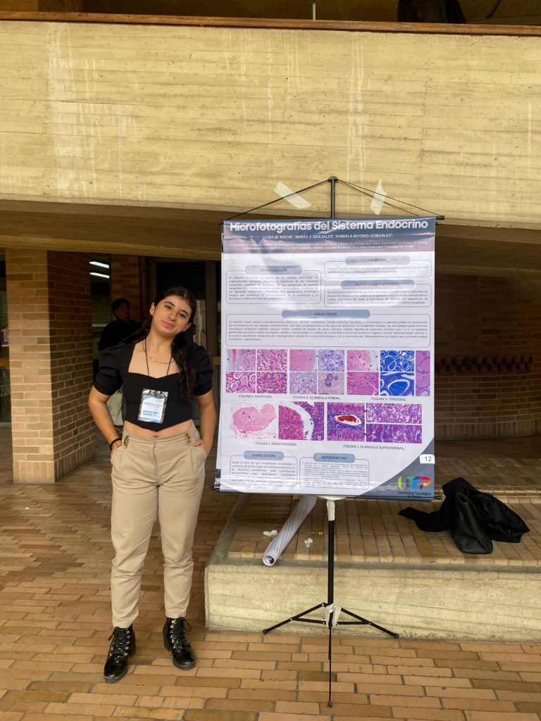 Luisa Roche, estudiante del pregrado de Medicina. Póster titulado «Microfotografías del sistema endocrino». Autores: Luisa Roche, María José Grajales y Daniela Botero-González. XI Concurso Nacional de Neurociencias, Universidad Nacional de Colombia, Bogotá, 2025