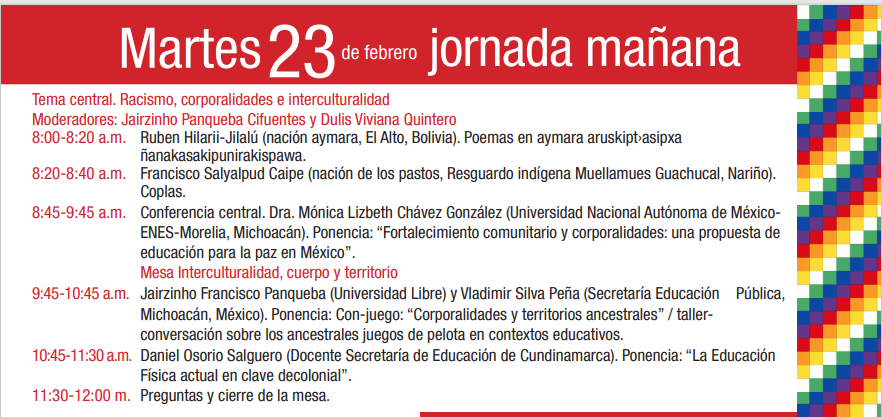 PROGRAMA: Congreso Internacional «Interculturalidad,Decolonialidad,Infancias y Educación»I Encuentro de Saberes del Quycagua Azonuca» o Mundo de la Vida III conversatorio Dia Internacional de la Lengua Materna y Día Nacional de las Lenguas Nativas de Colombia